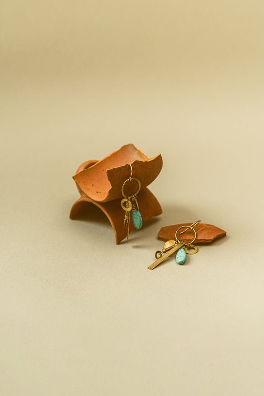 Brass loop earrings with turquoise danglings