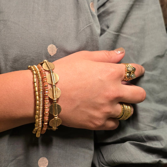 Layered Rose Quartz Bracelet with Brass Charms