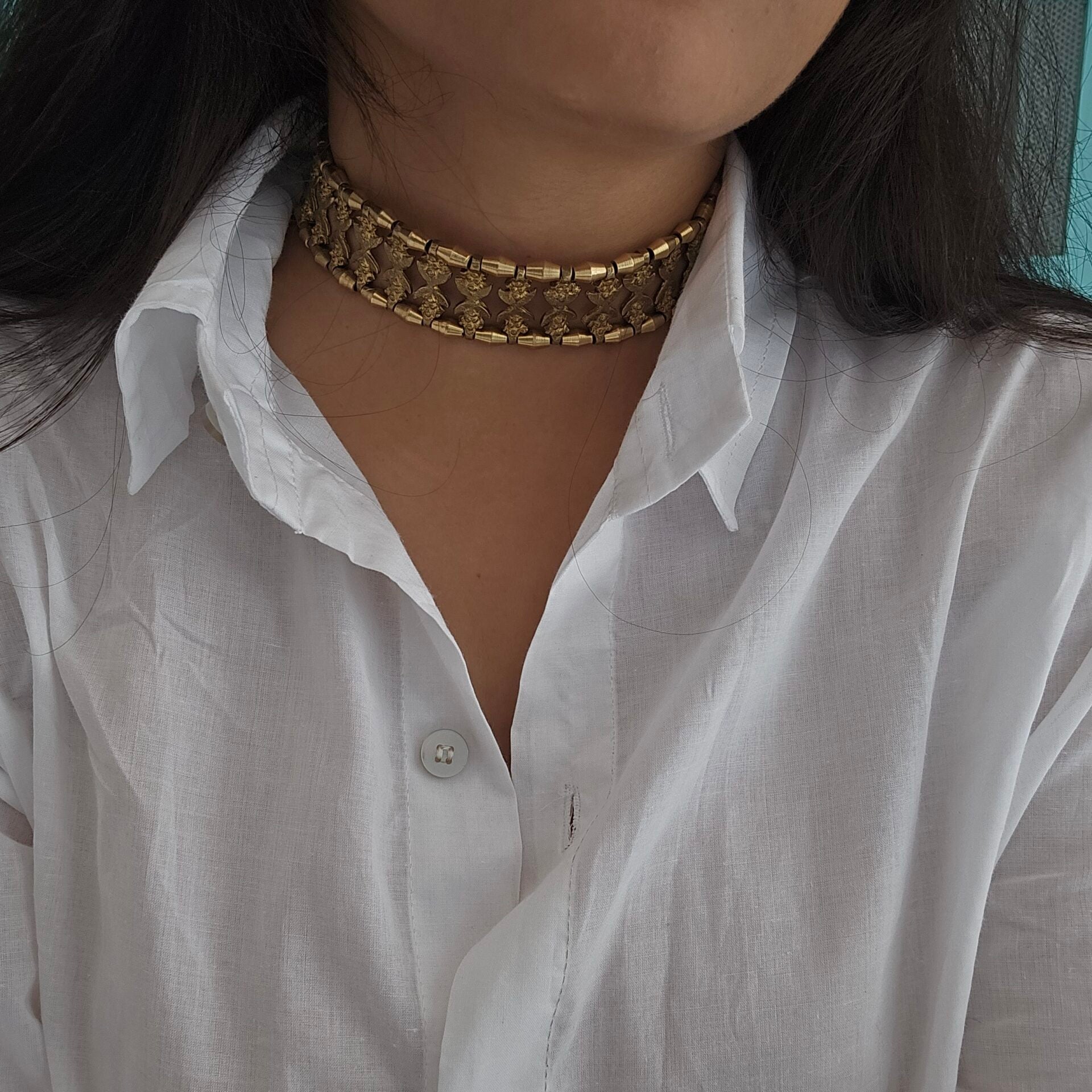 The Bold Elegance Brass Choker is a striking blend of craftsmanship and style, handcrafted from pure brass. Its bold yet minimalist design exudes sophistication, making it the perfect statement accessory for any occasion. This artisan-made piece celebrates timeless beauty with a contemporary flair, ideal for those who cherish unique, handmade jewelry.