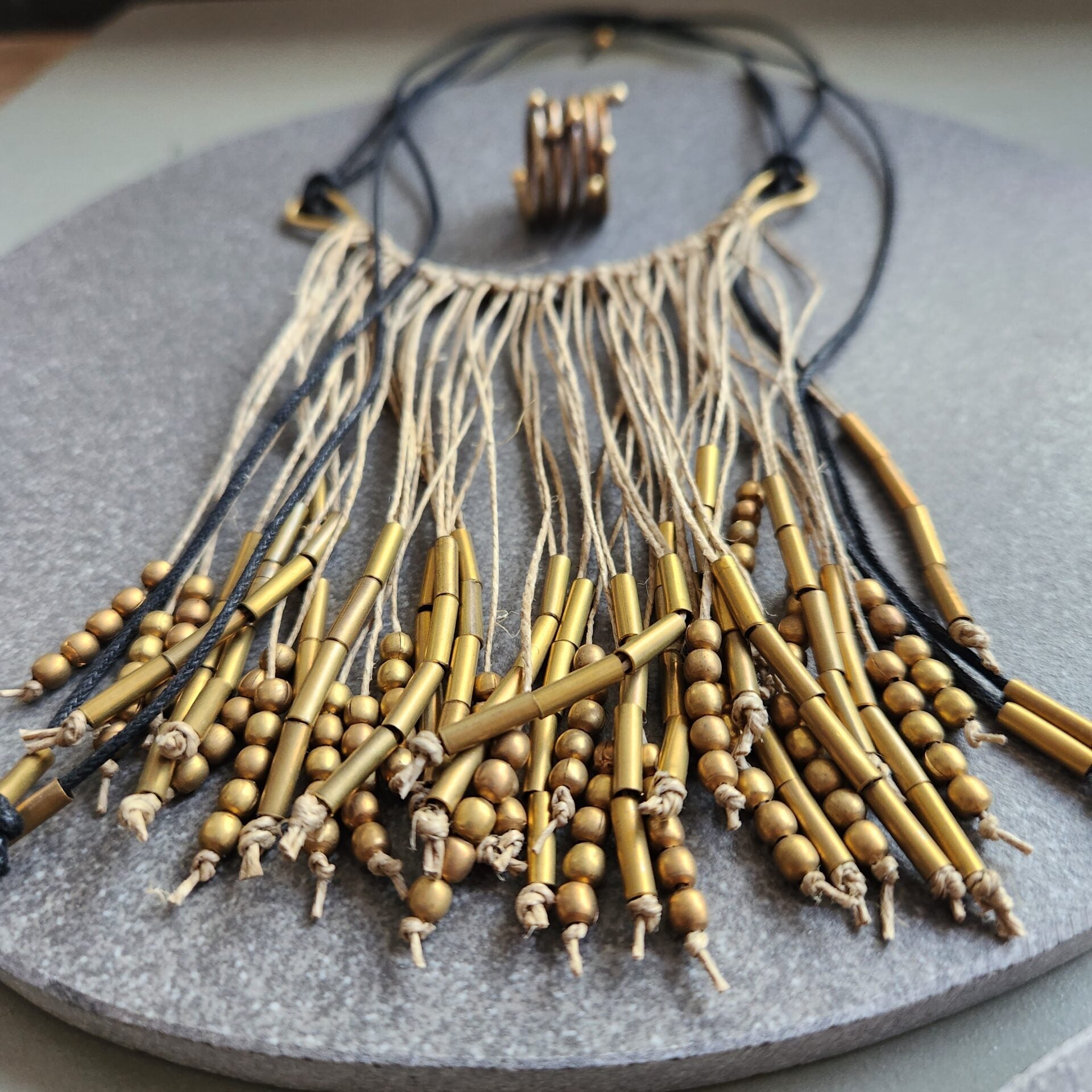 - Stacked Brass Ring with Rava Balls - 869 ₹