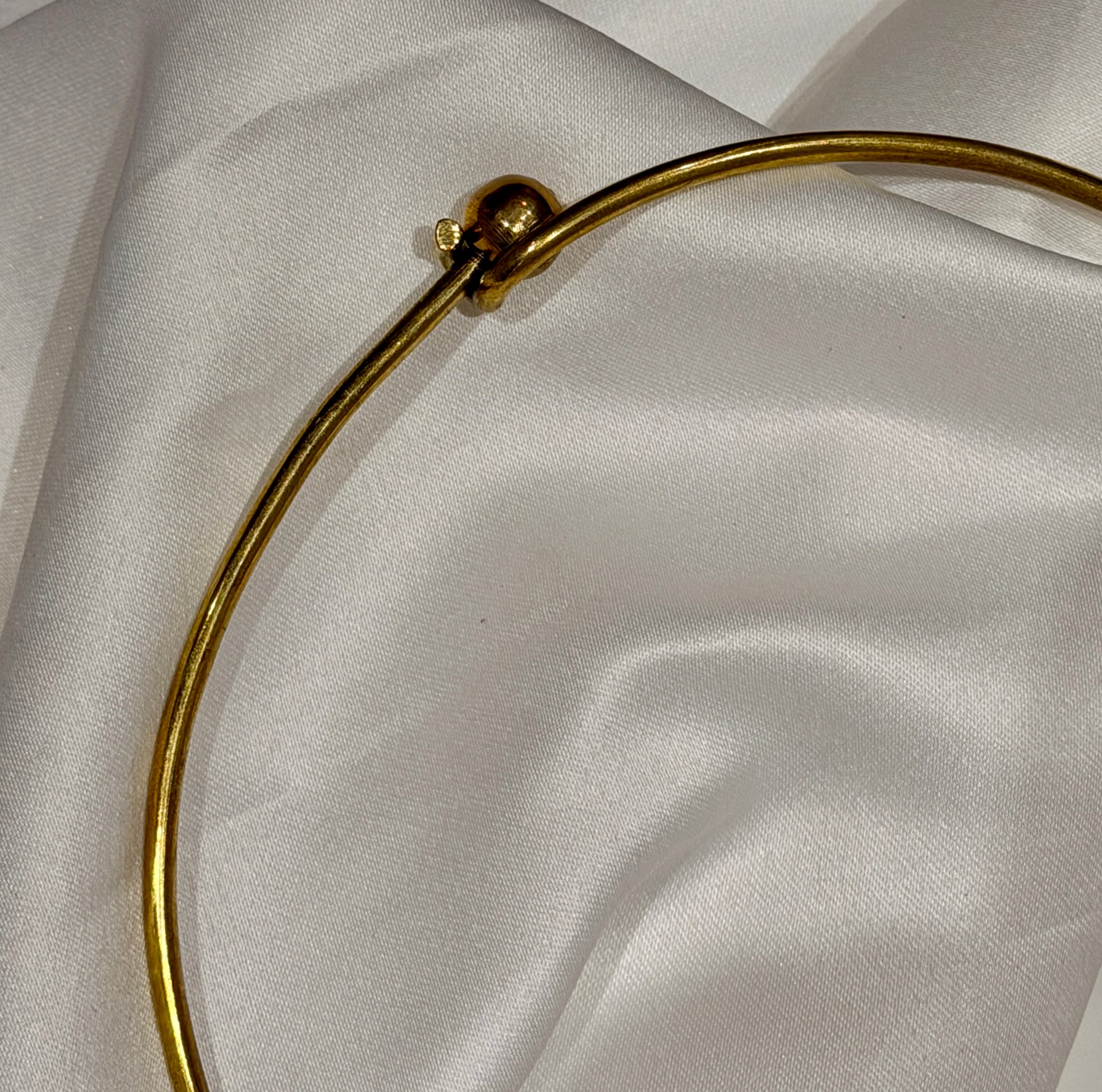 This stunning brass Hansli necklace has a open-ended choker design. It's decorated with four fish pendants of different sizes and textures, with one of the charms featuring a small turquoise bead that suggests life in a water. The piece has a rustic, bohemian feel.