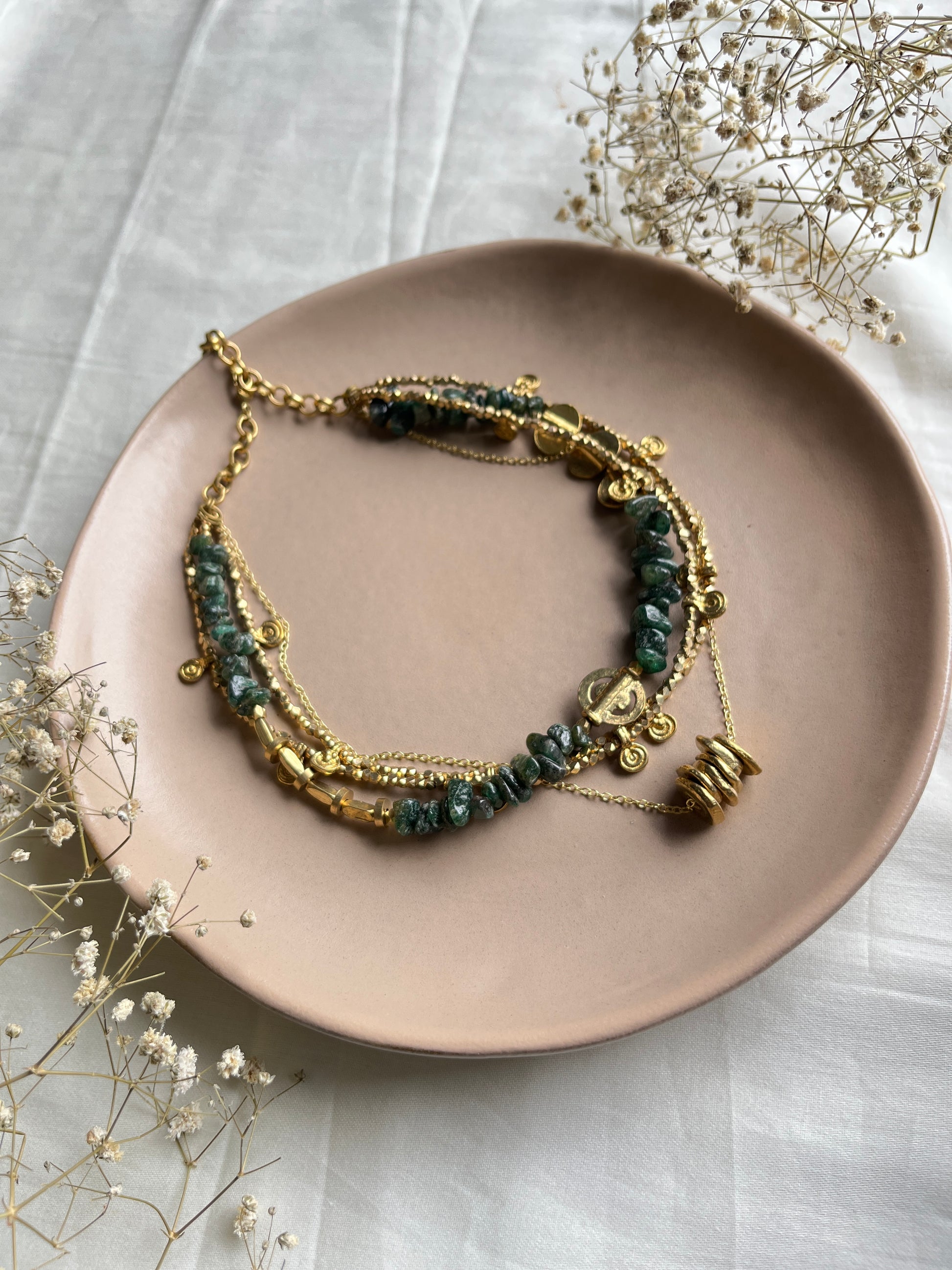 Green maize layered necklace
