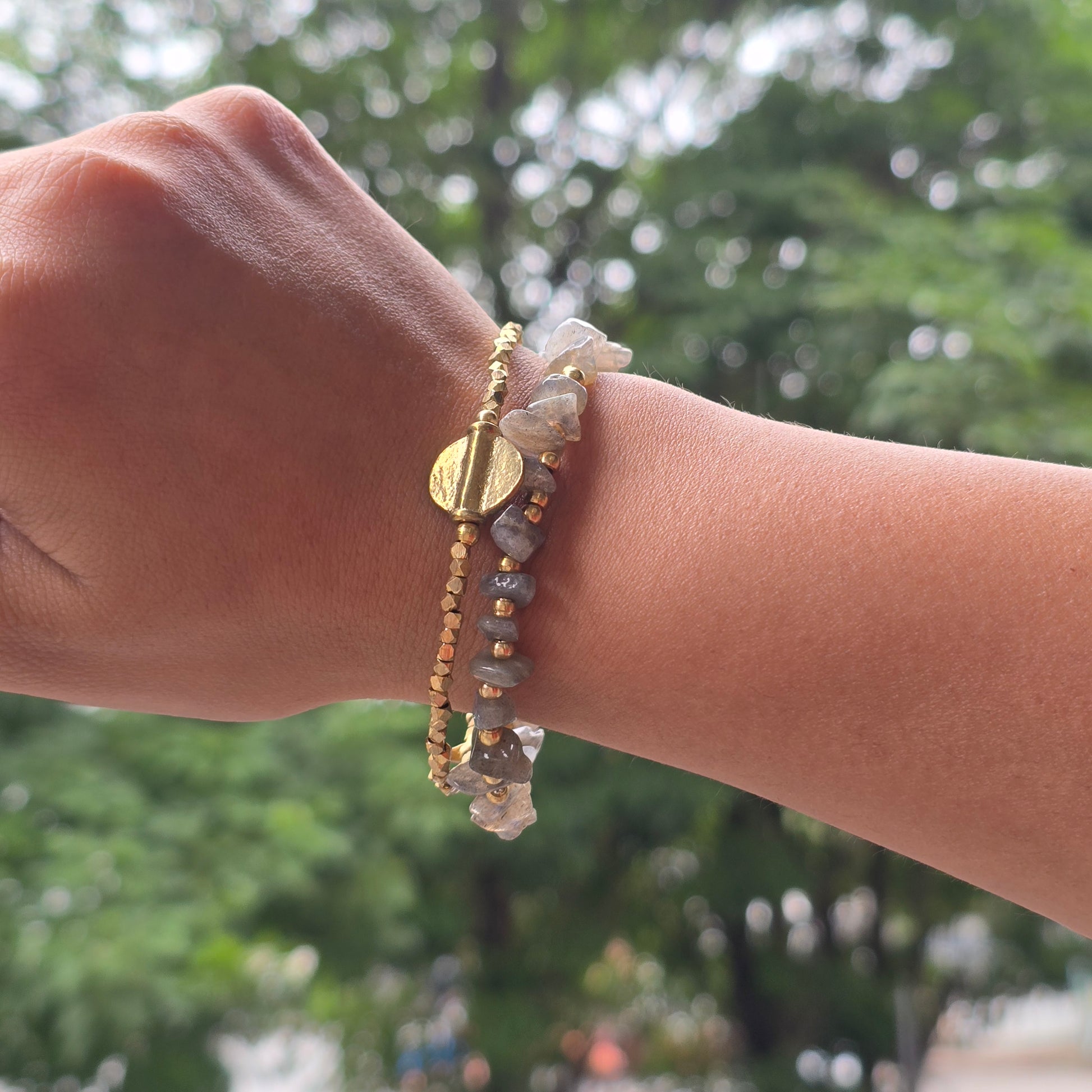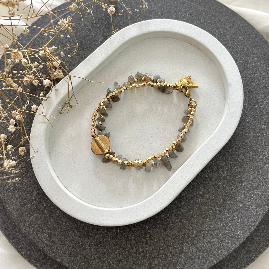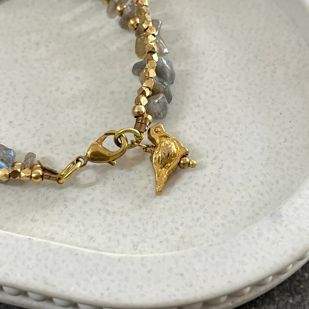 Handcrafted with natural labradorite stones, brass beads, brass charms !