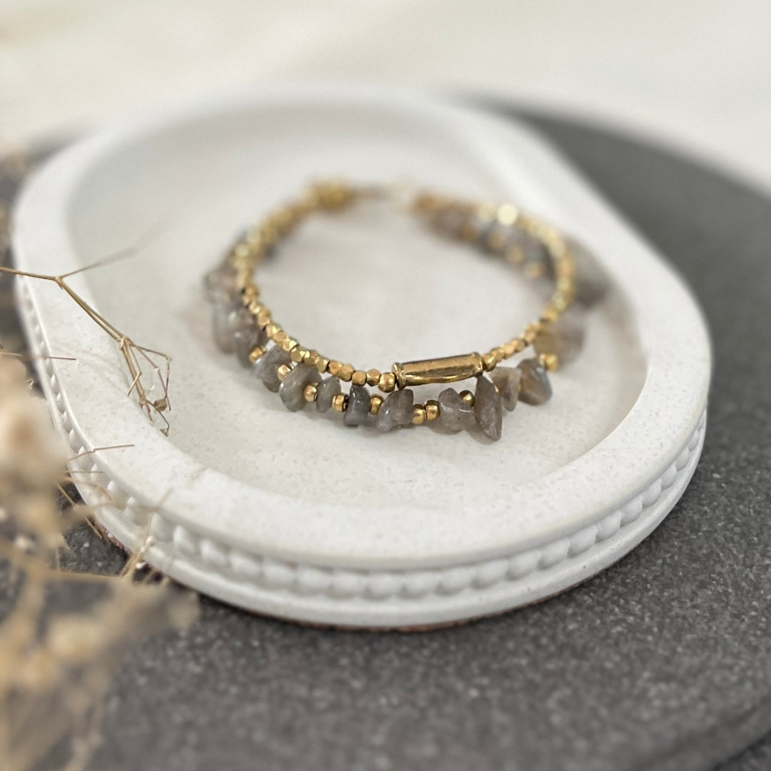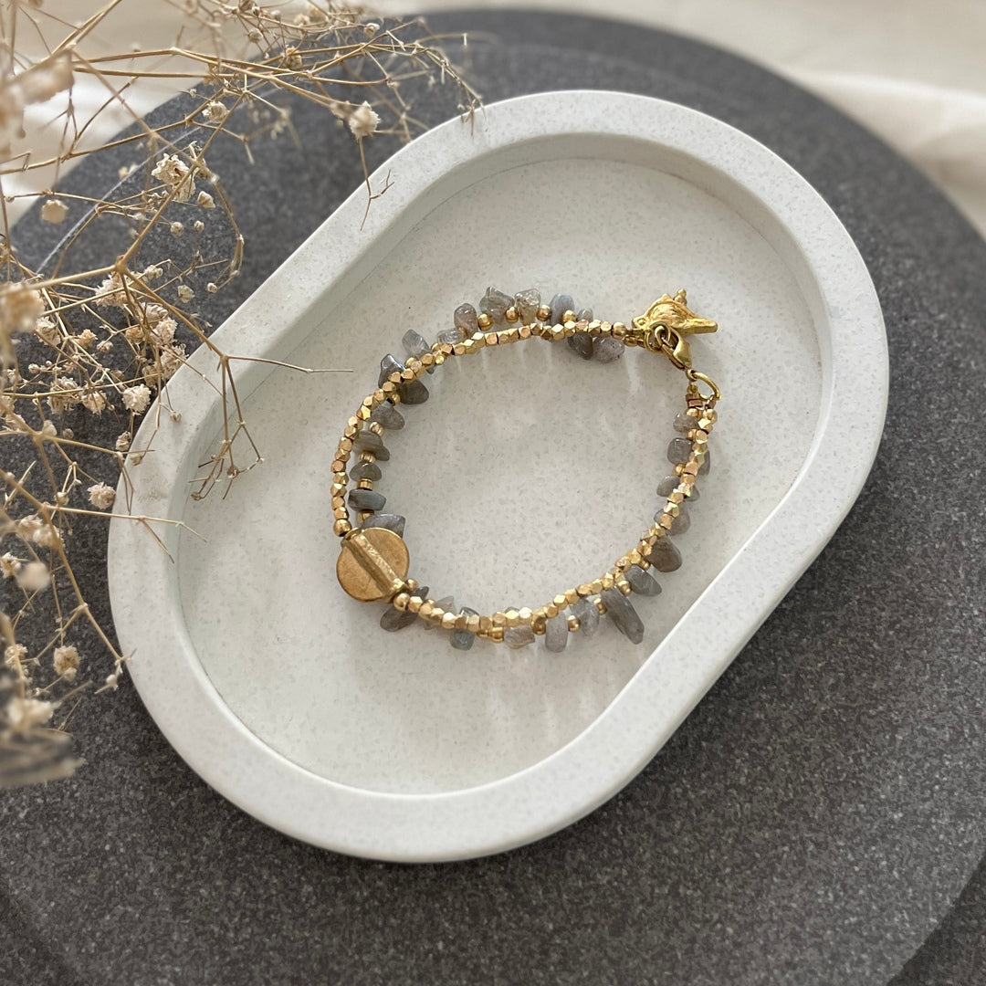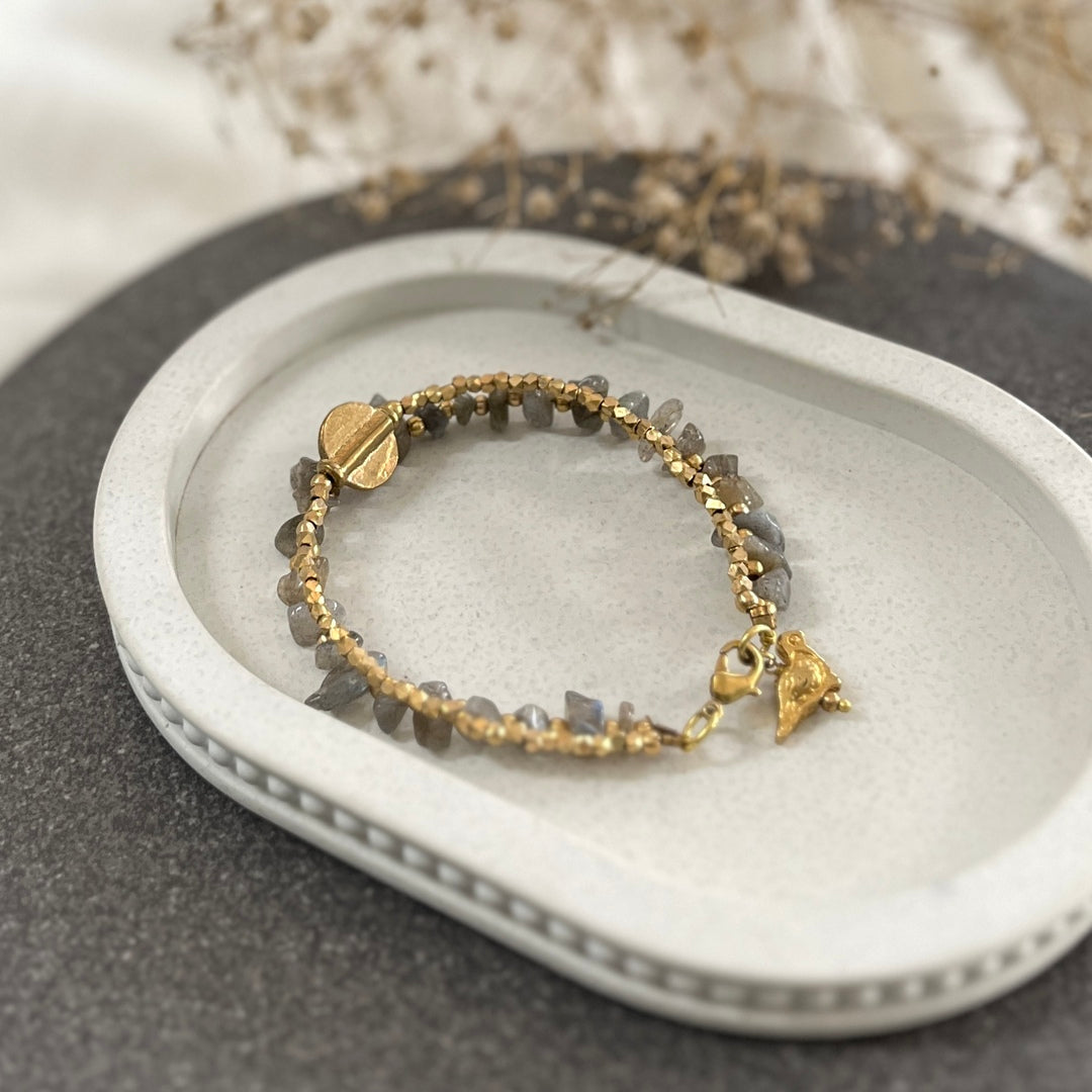 Handcrafted with natural labradorite stones, brass beads, brass charms !