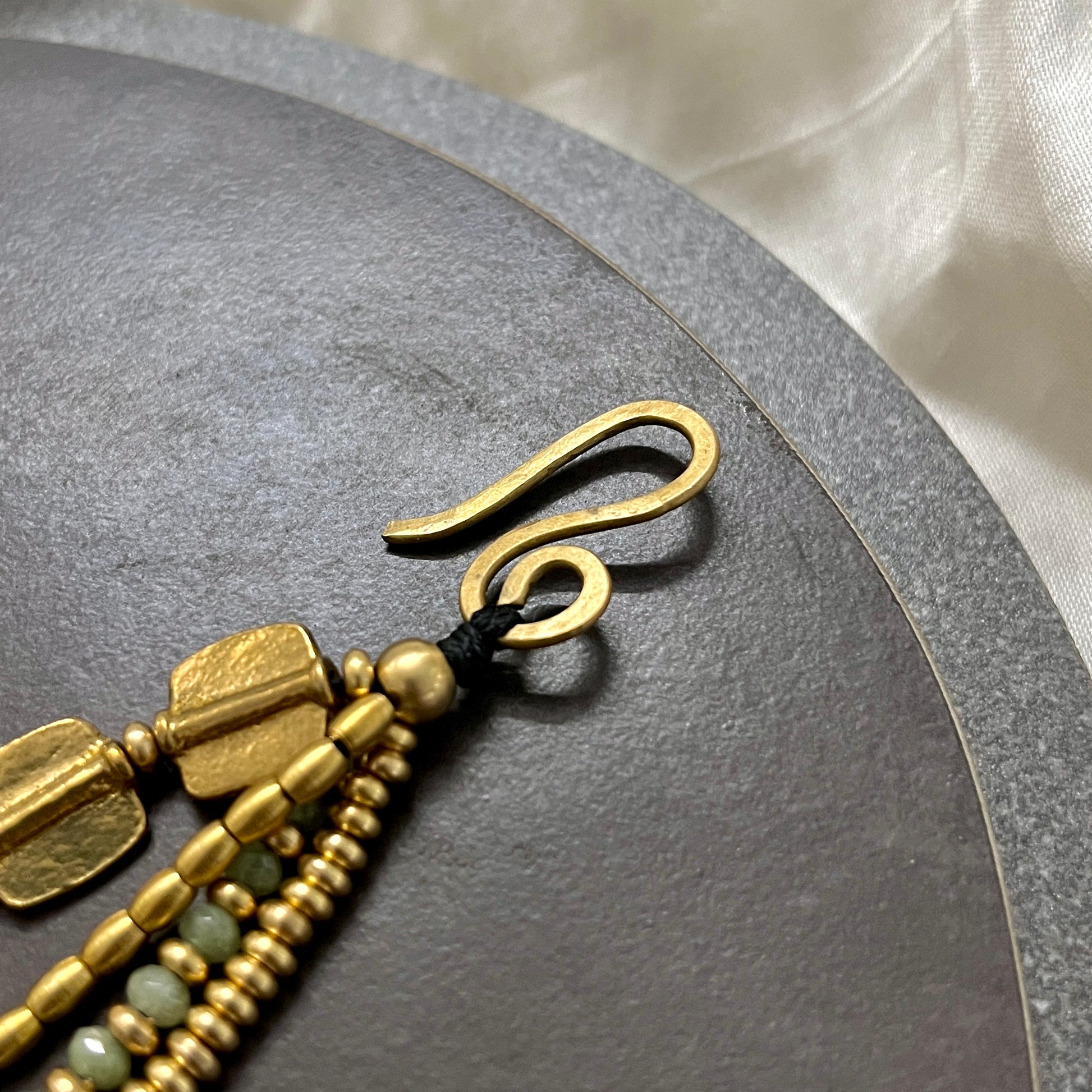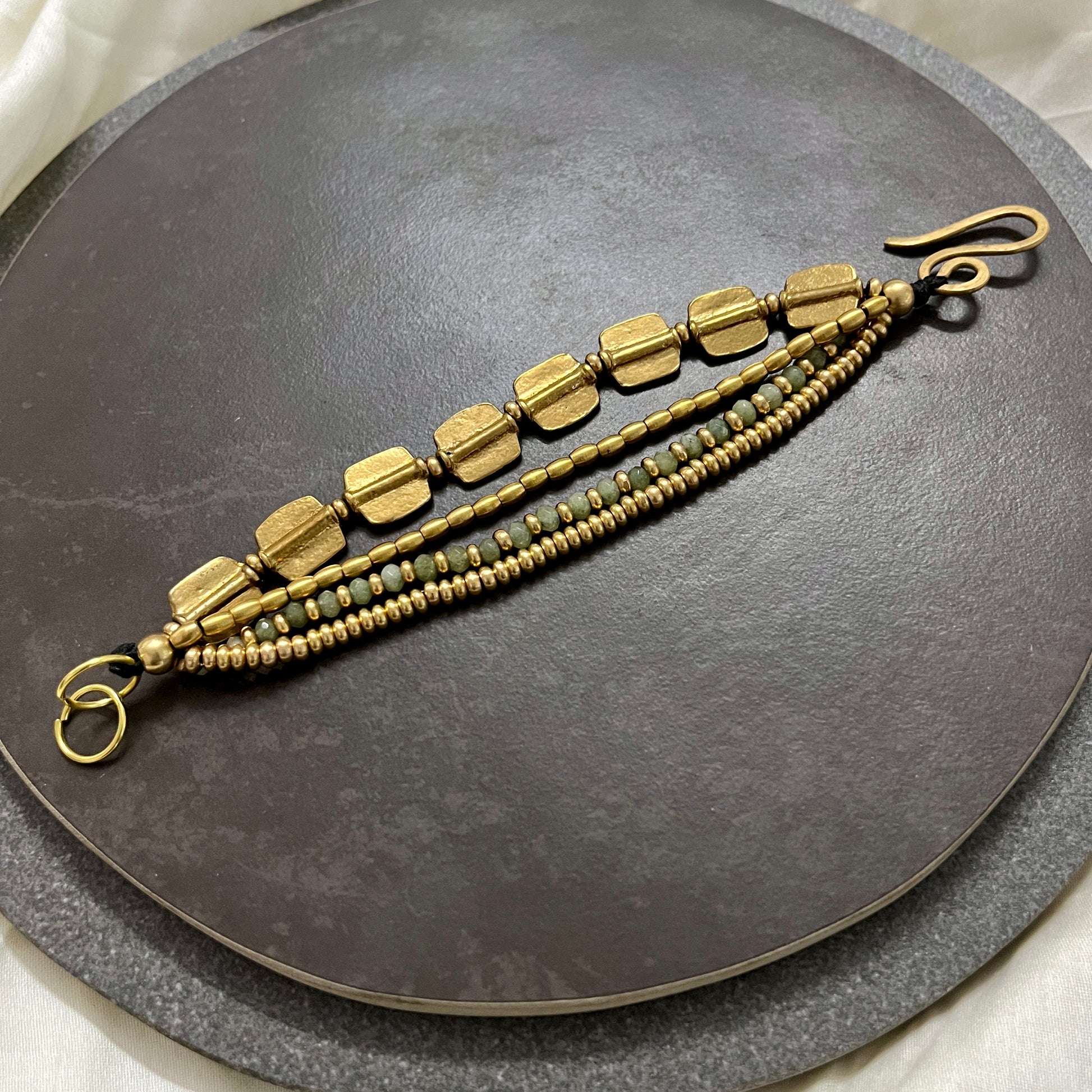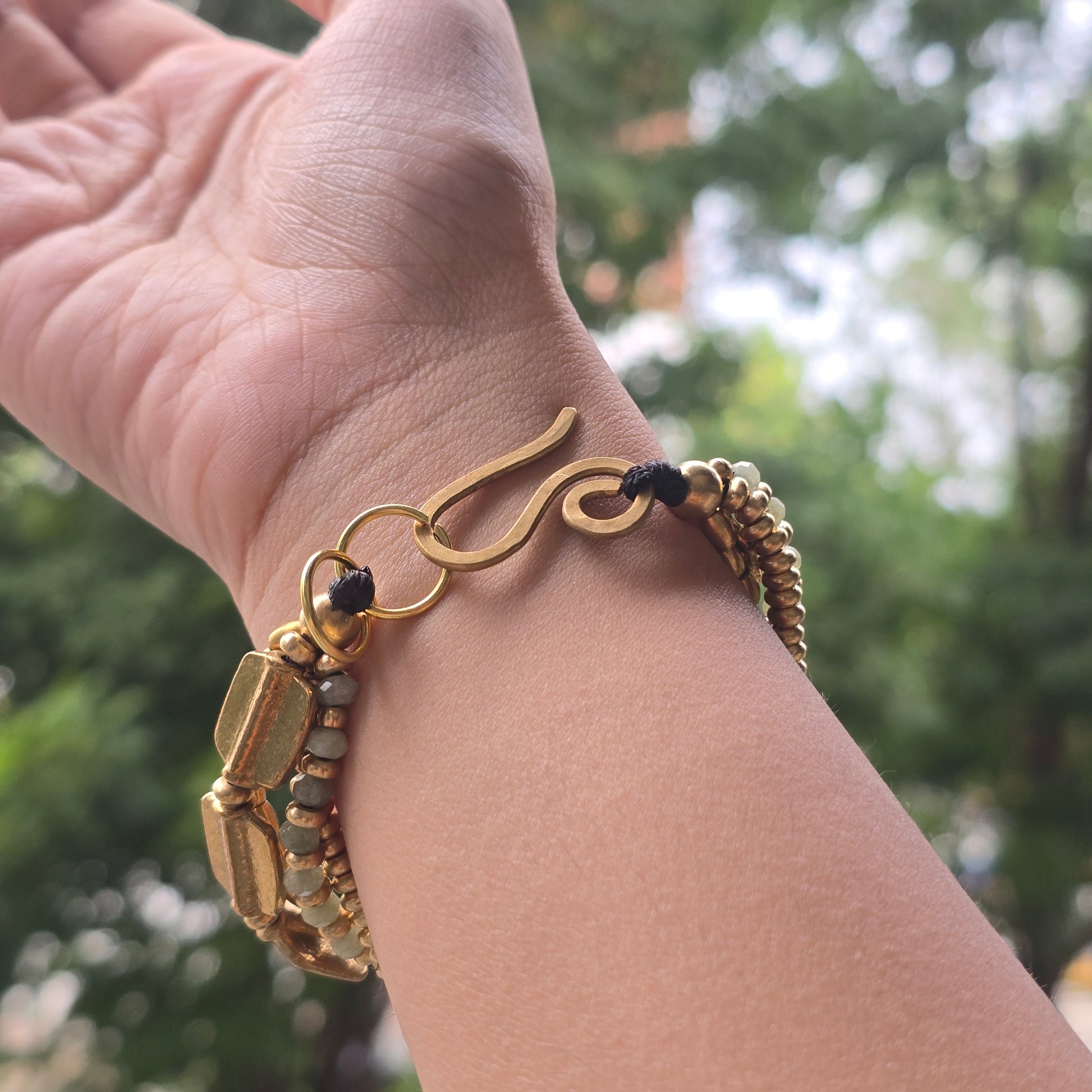 Handcrafted with natural labradorite beads, brass beads and rectangle charms.