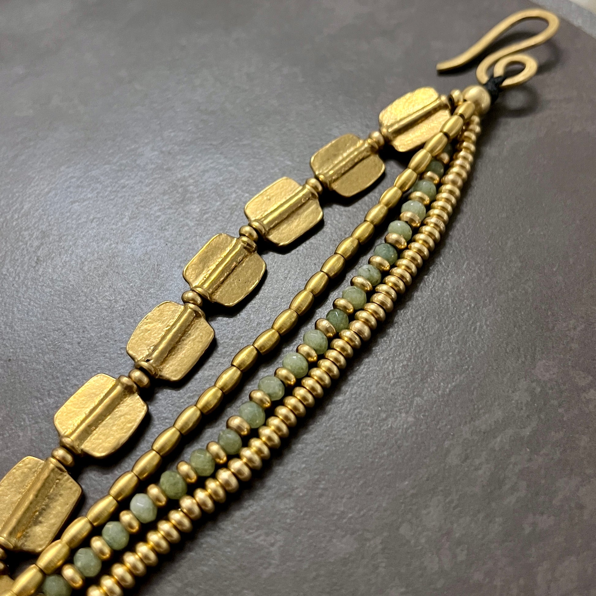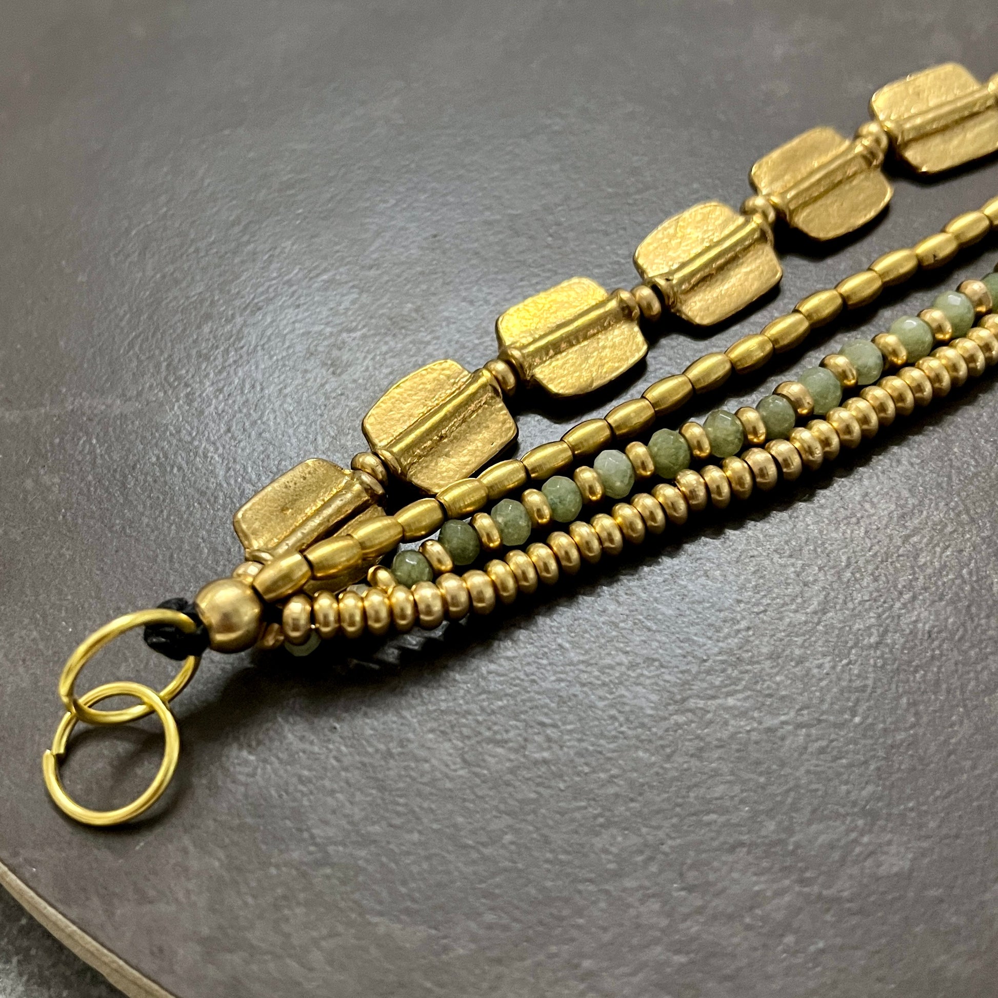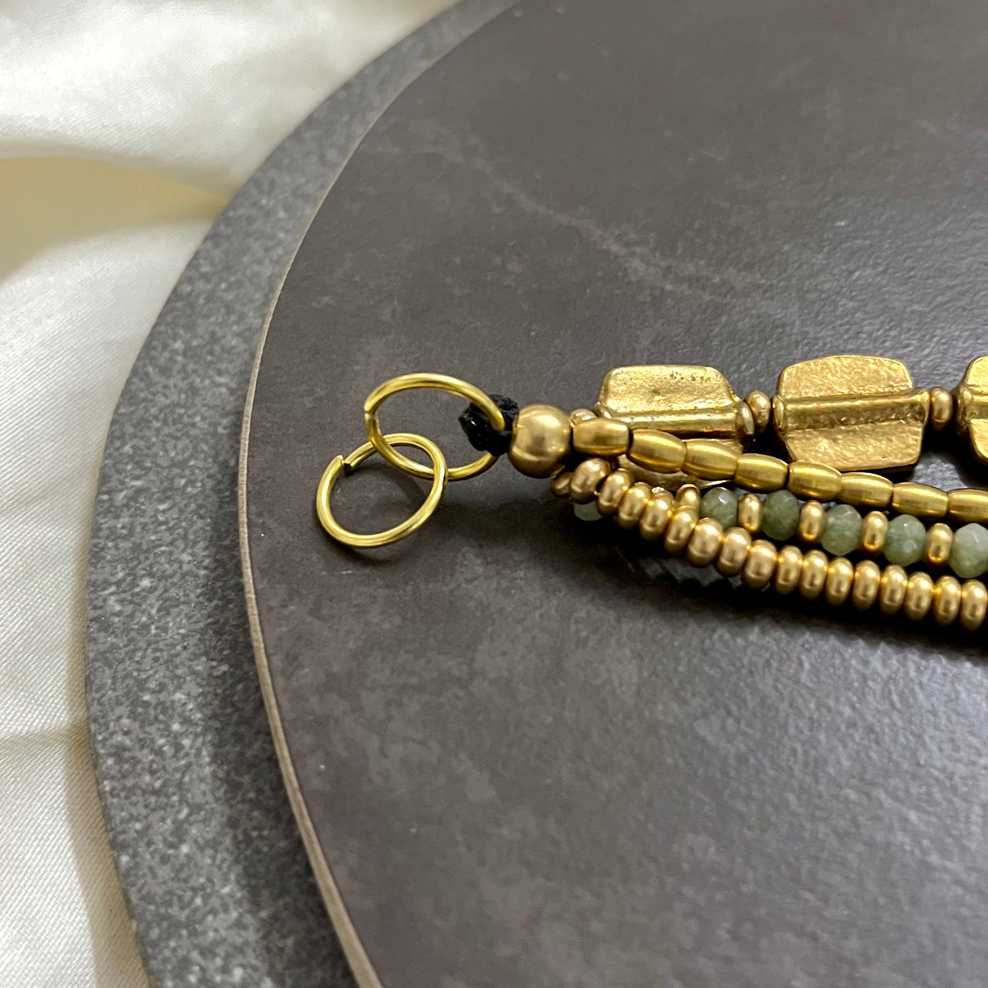 Handcrafted with natural labradorite beads, brass beads and rectangle charms.