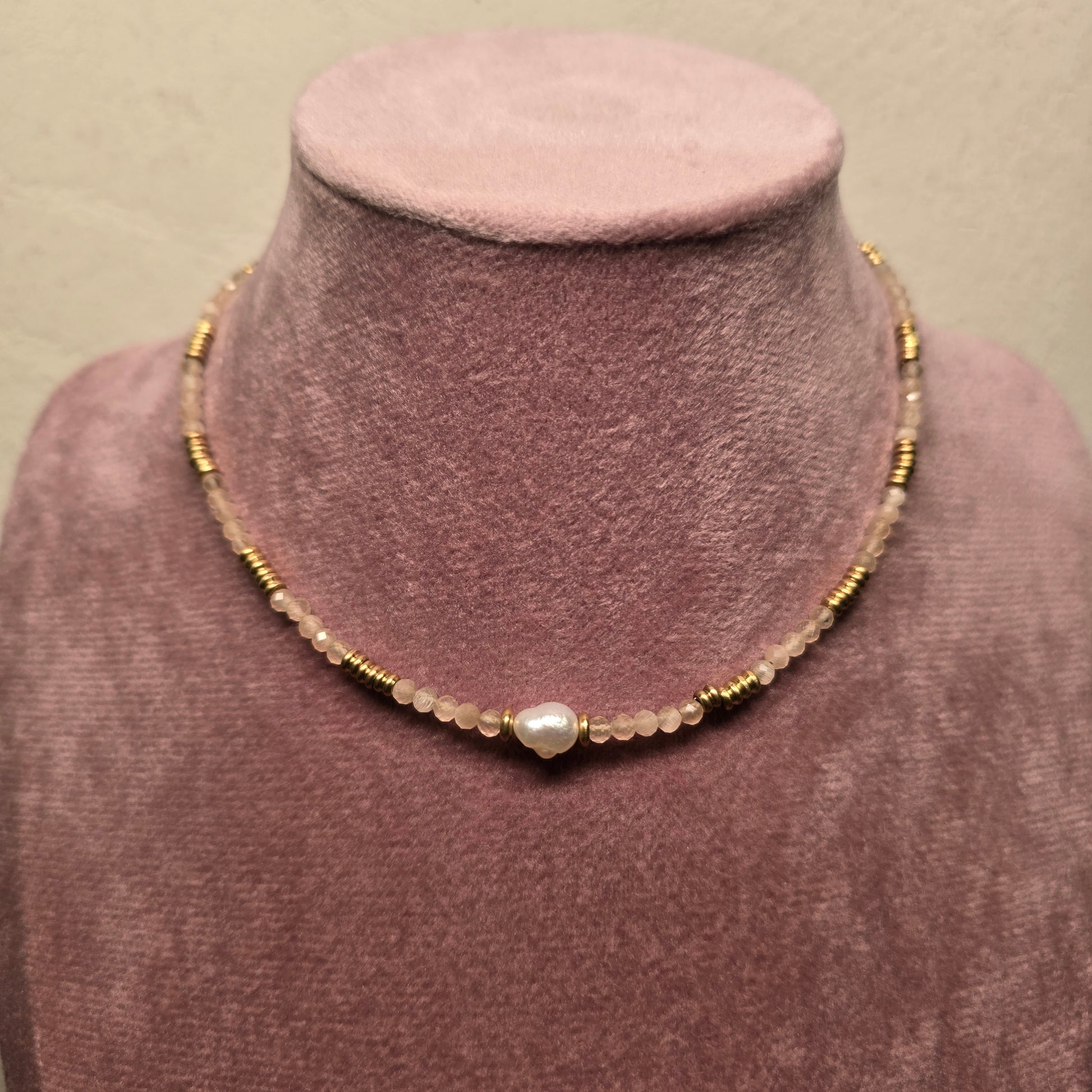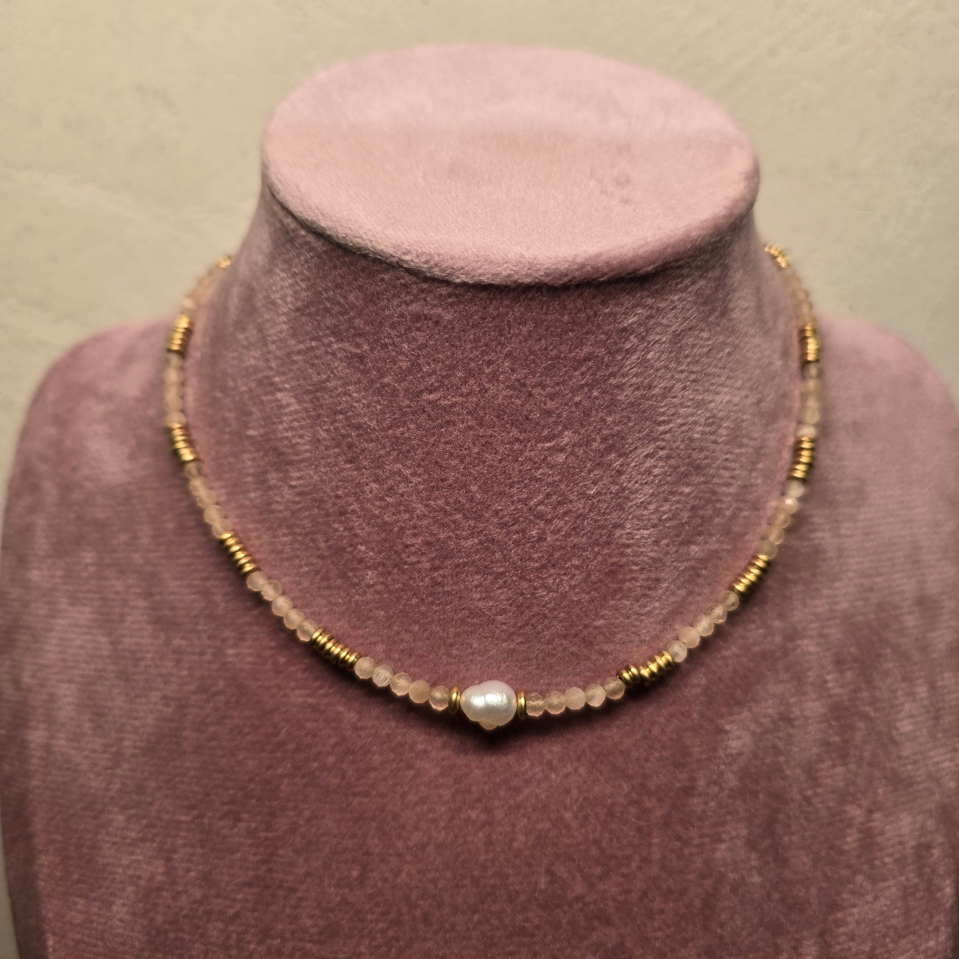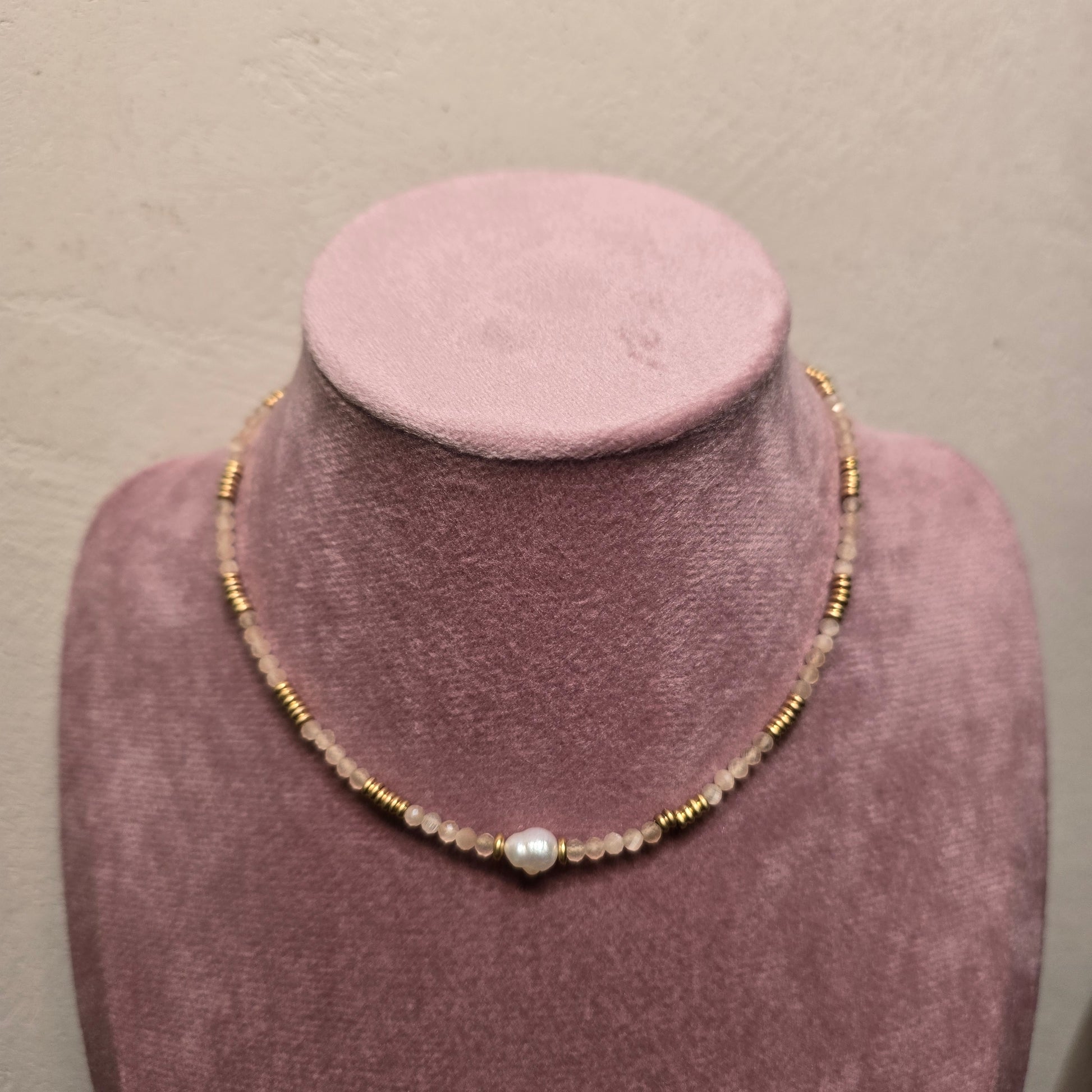 Handcrafted using semi precious stones beads, brass beads and natural pearl.